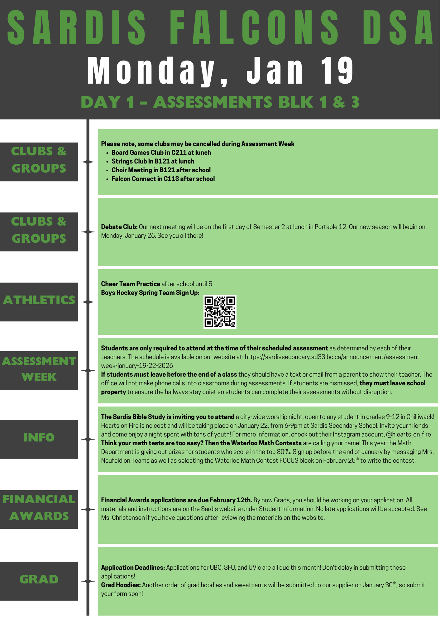 Please note, the Sardis Bistro will be closed this week so students should pack a lunch.